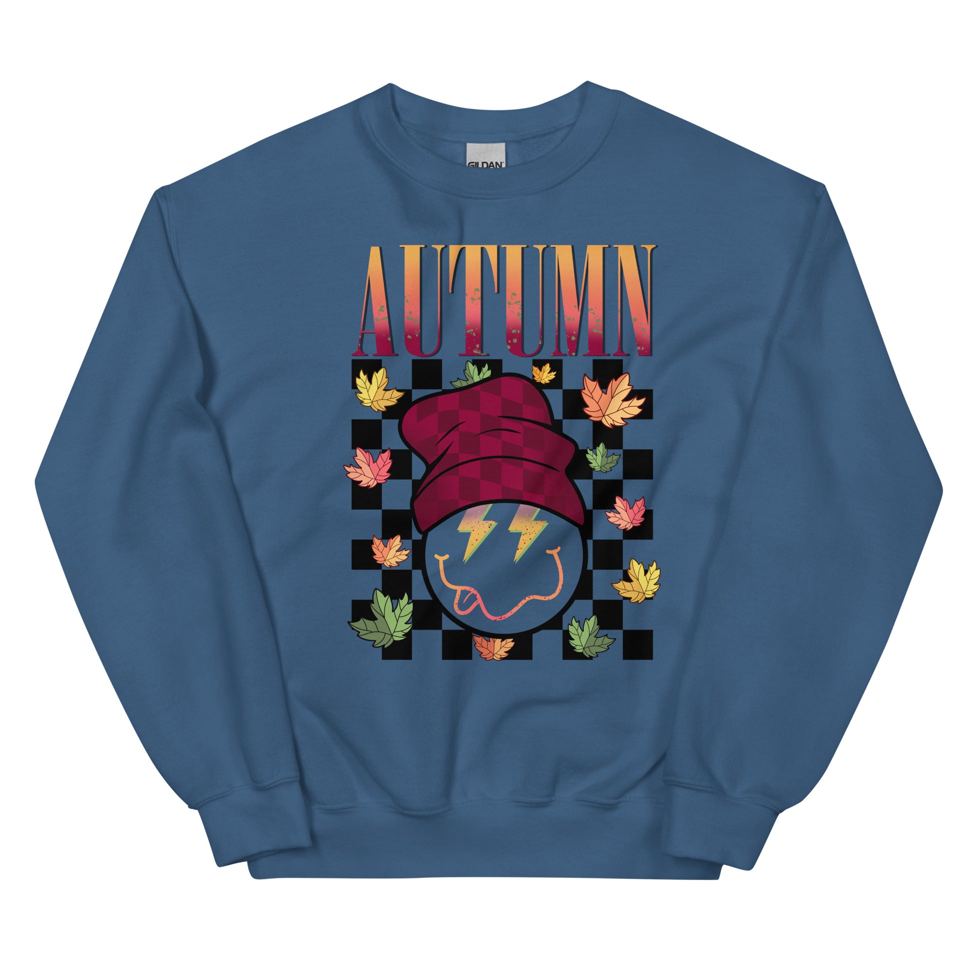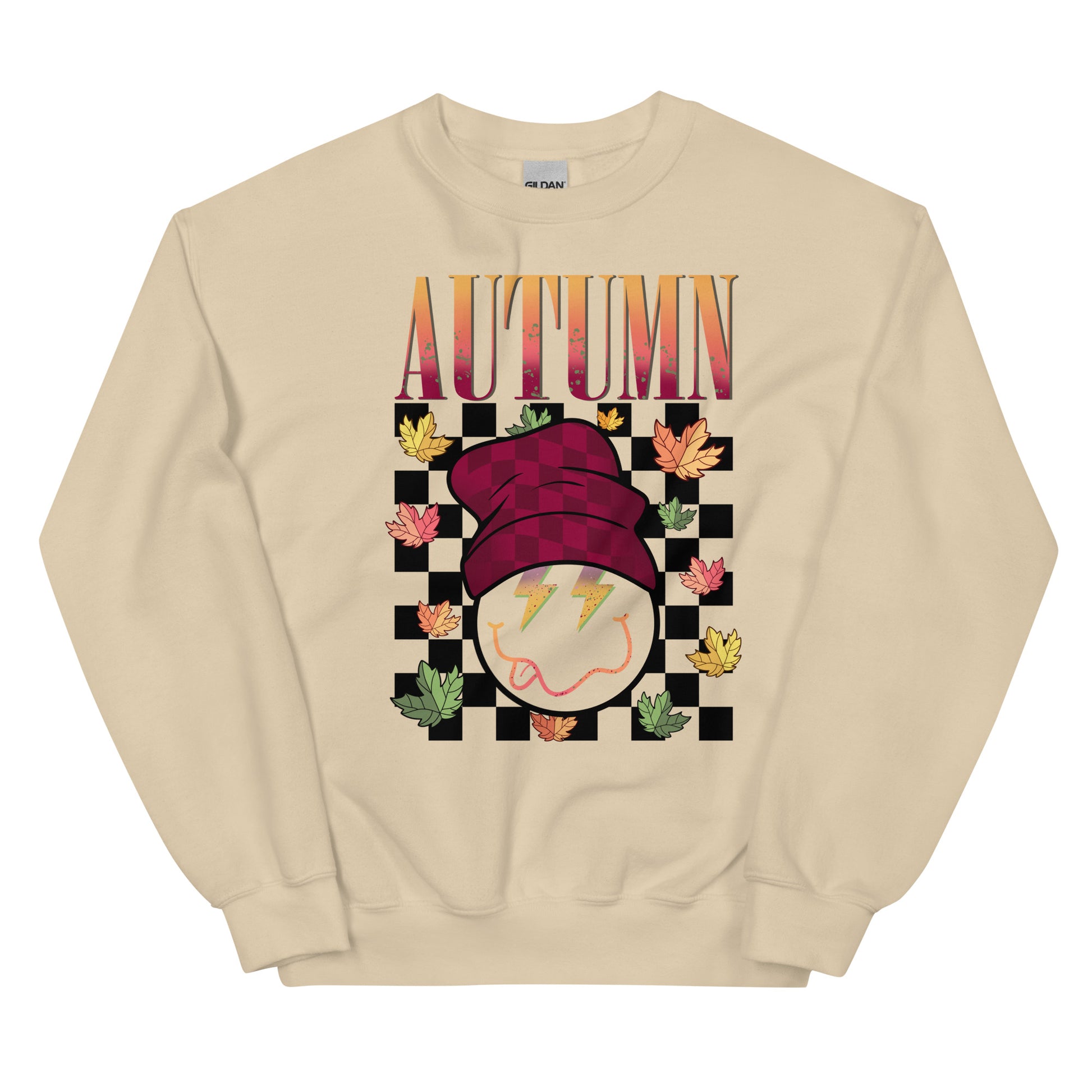 Hug the season with this Autumn Crewneck Sweatshirt! It's the perfect way to (figuratively) bundle up on a chilly day with the retro style of a happy-go-lucky smiley face in a beanie. It's the coolest of season sweaters!