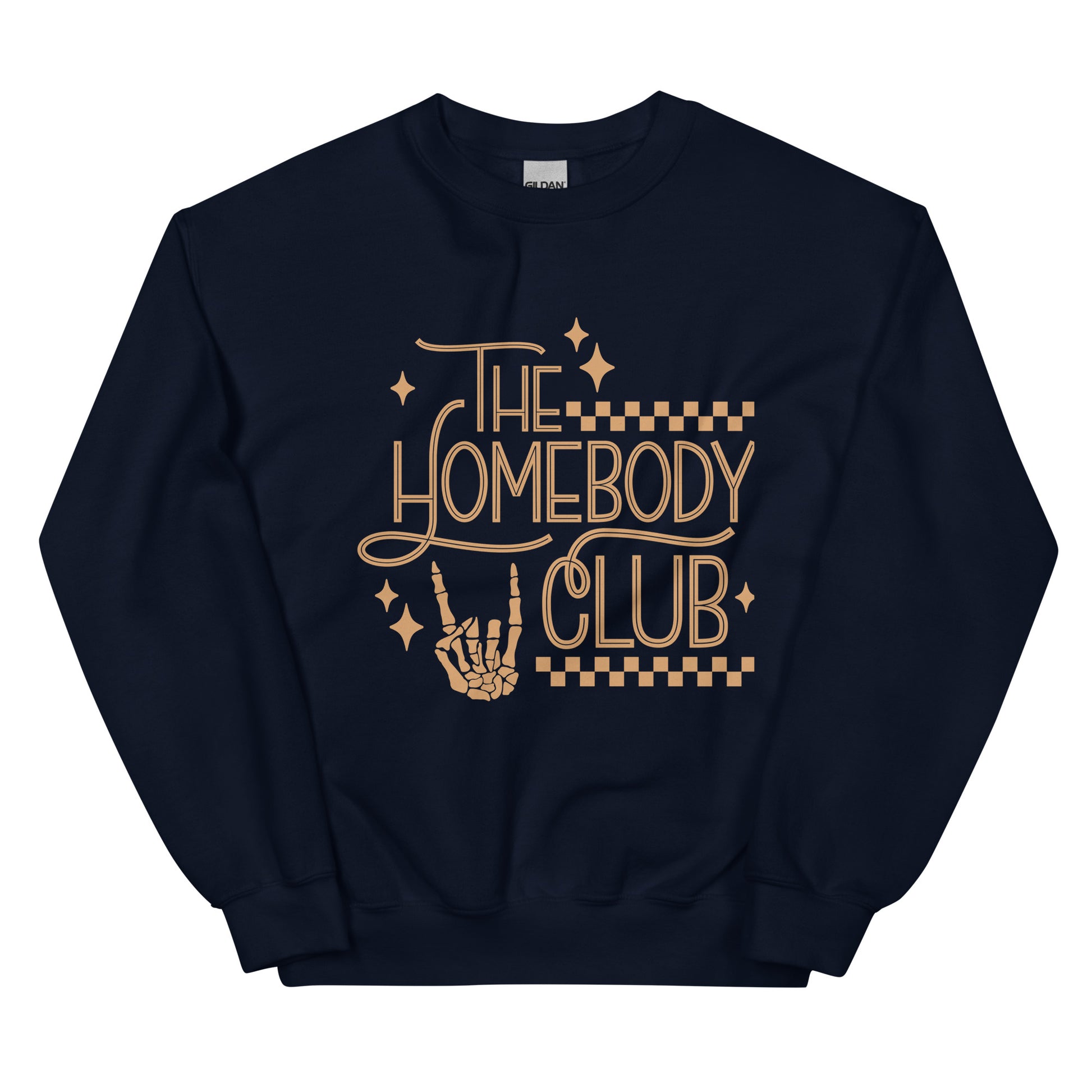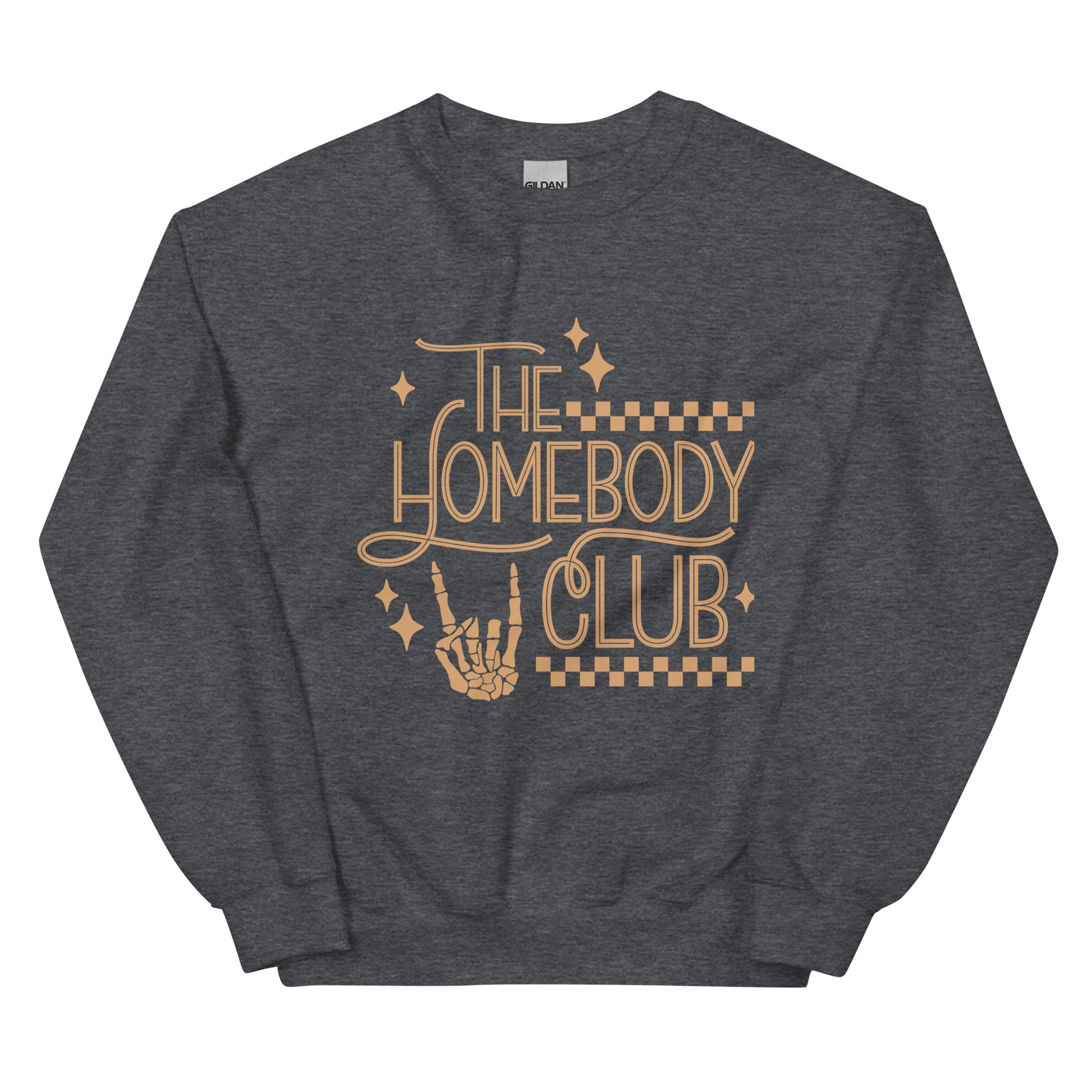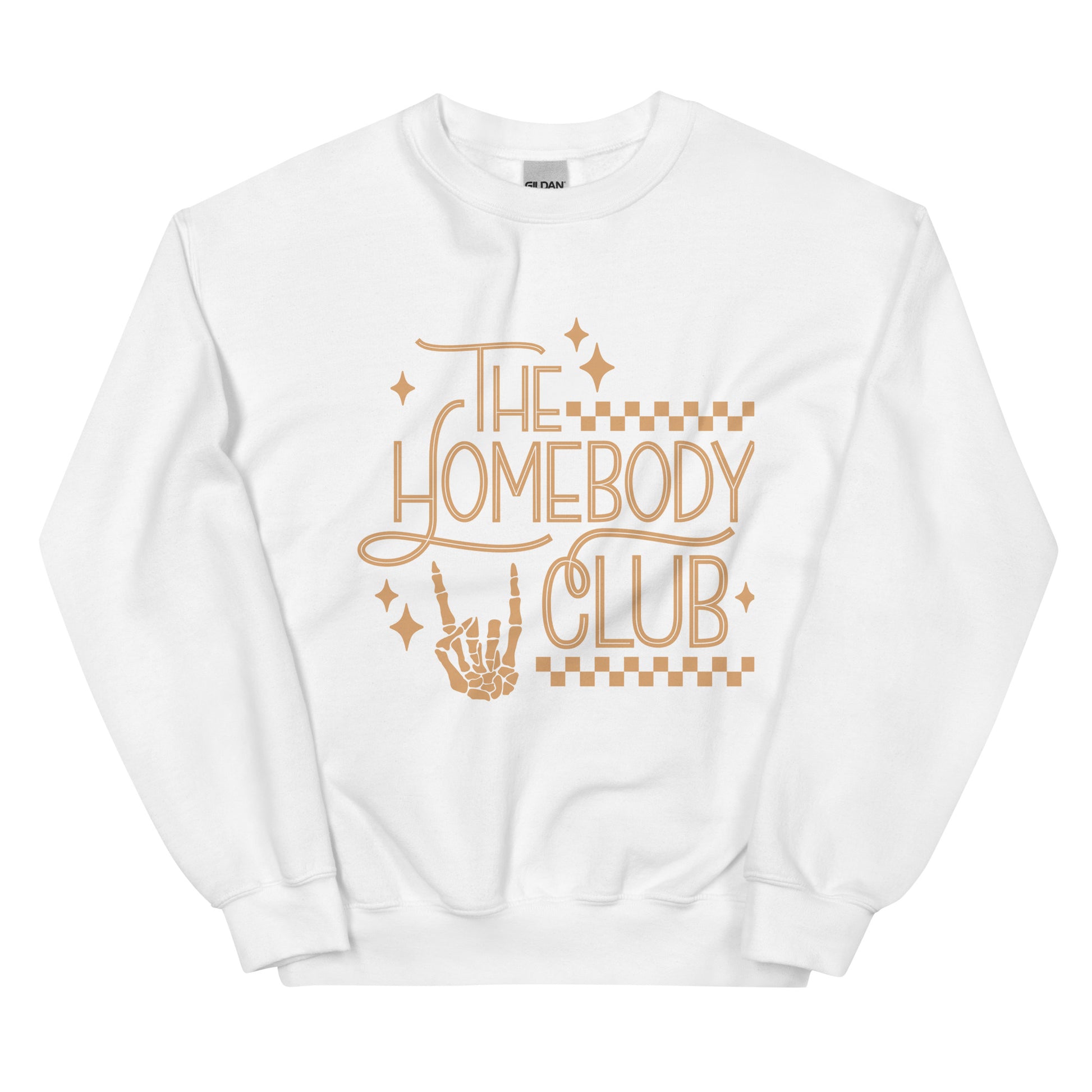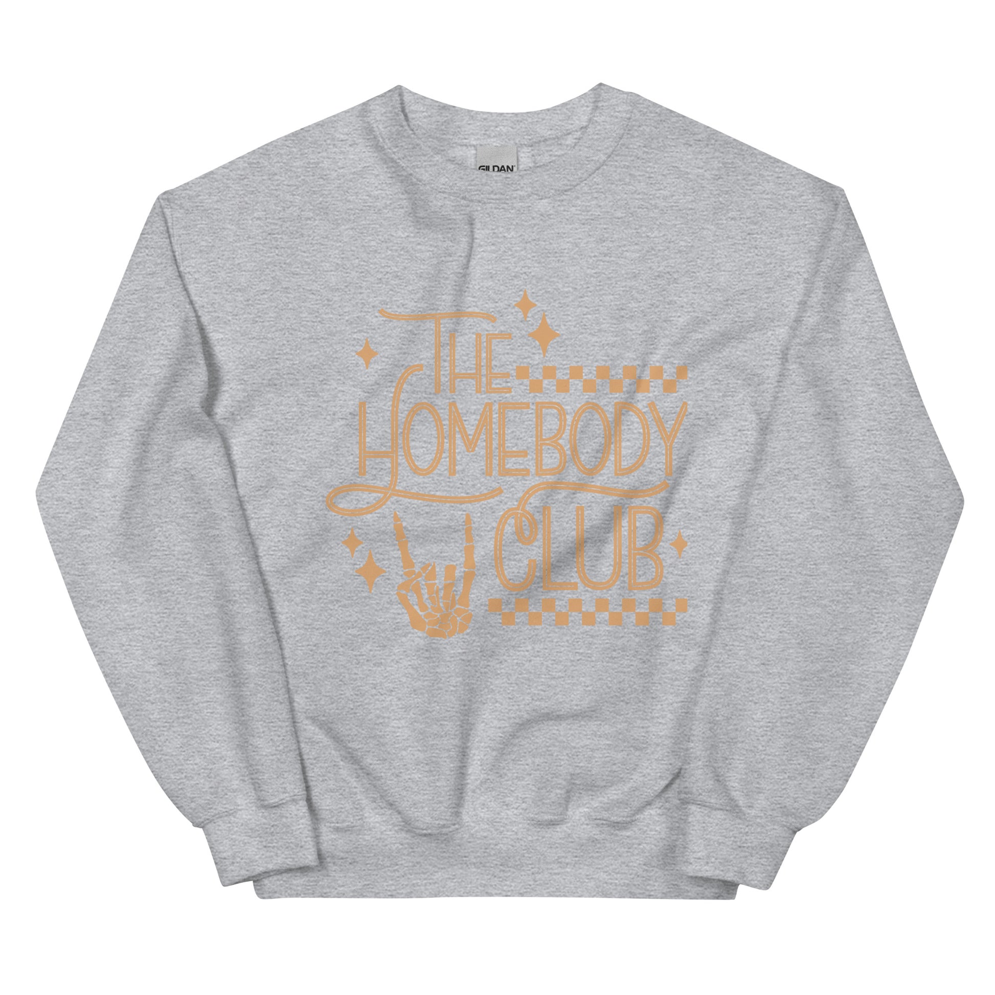 Unlock member-exclusive benefits with The Homebody Club Crewneck Sweatshirt - because there's no place like staying in! Featuring a funny skeleton hand print that shows off your social anxiety, it's perfect for cozy nights in or spooky Halloween shenanigans. Let's get cozy!