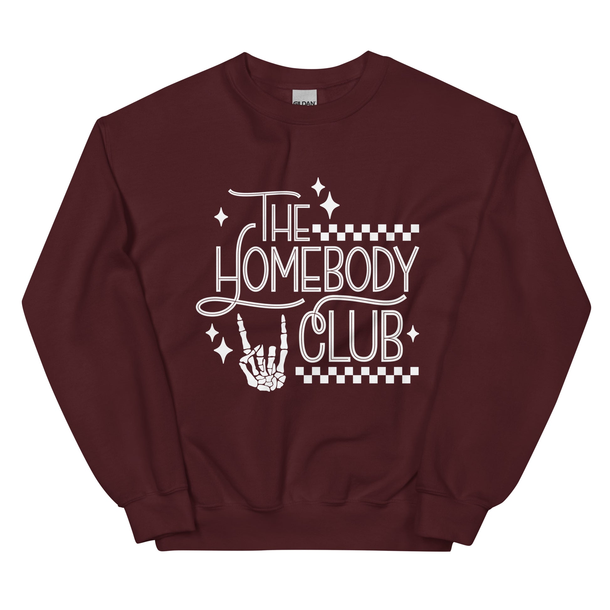 Unlock member-exclusive benefits with The Homebody Club Crewneck Sweatshirt - because there's no place like staying in! Featuring a funny skeleton hand print that shows off your social anxiety, it's perfect for cozy nights in or spooky Halloween shenanigans. Let's get cozy!
