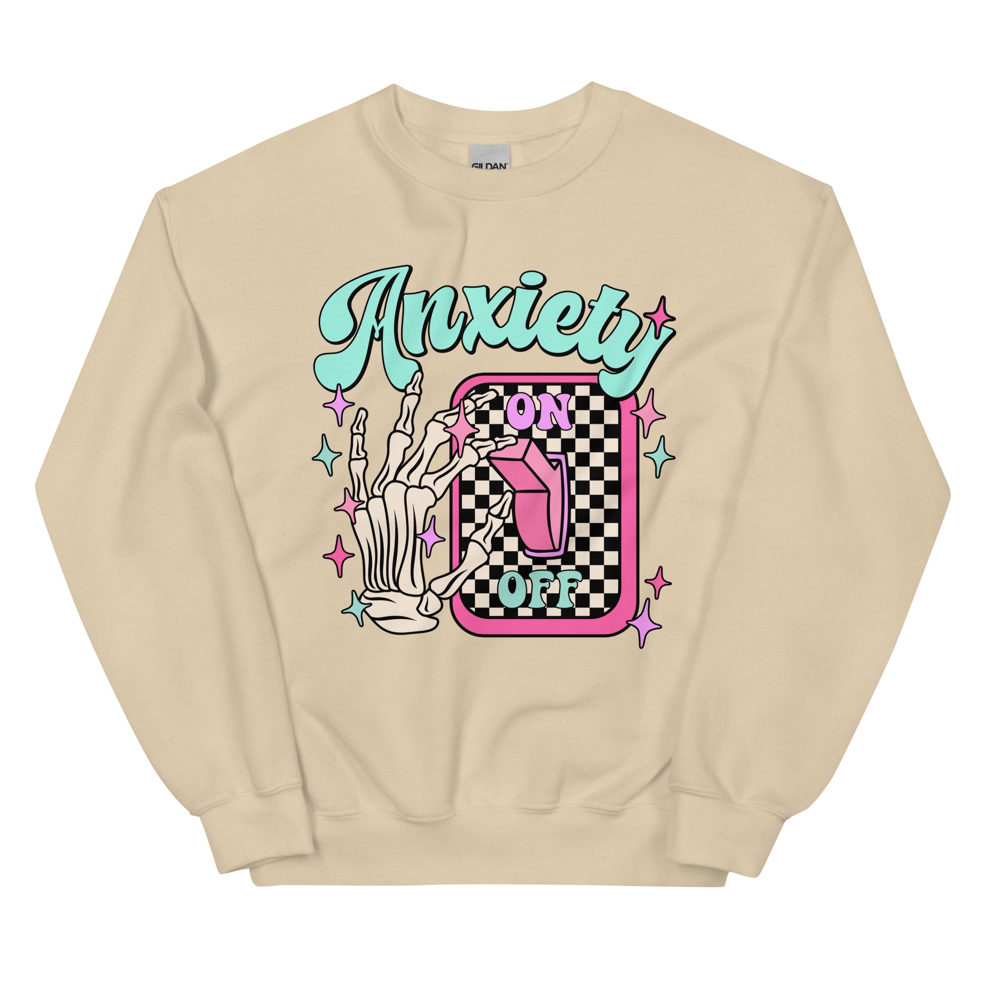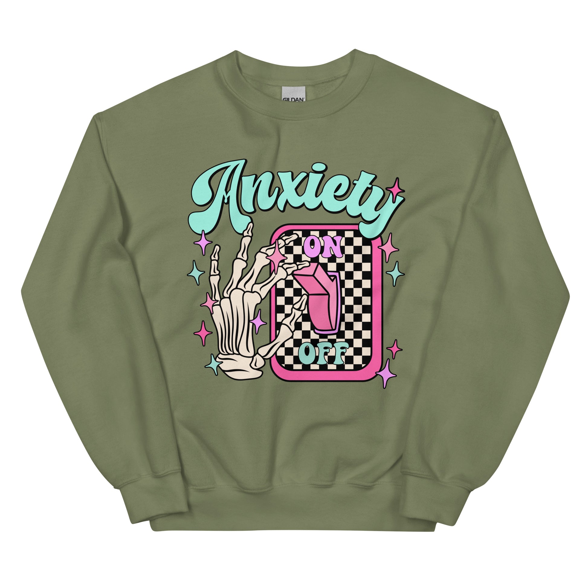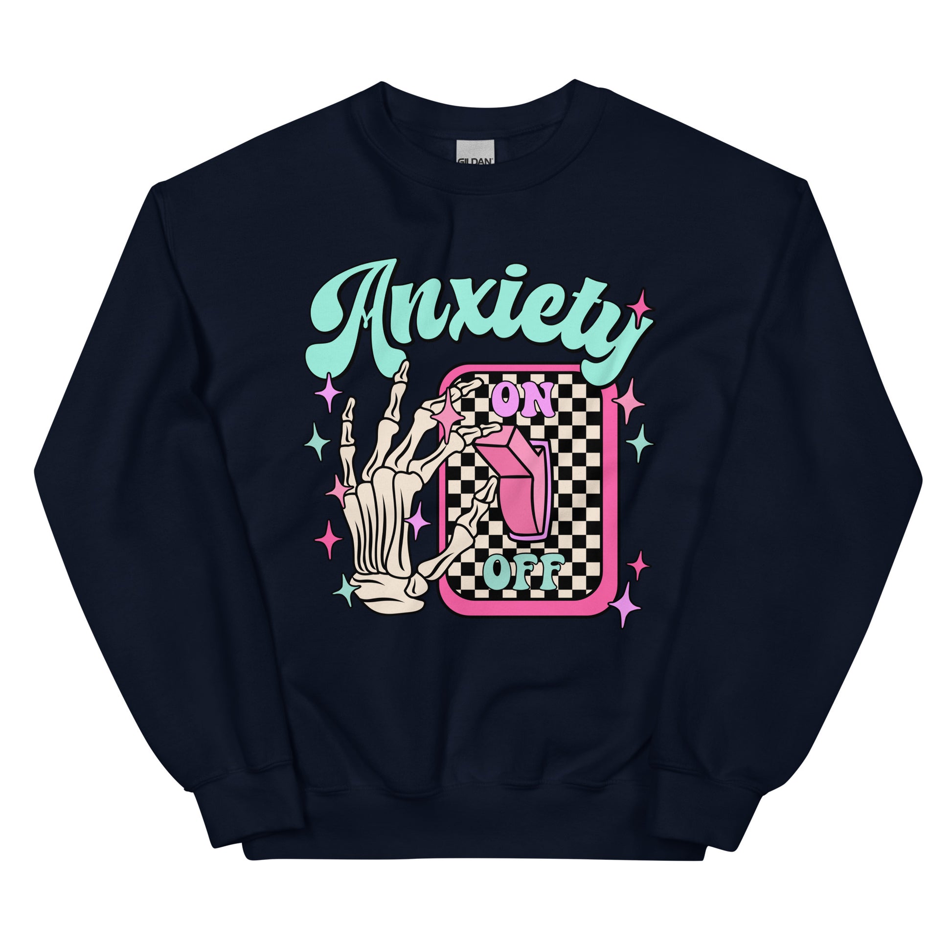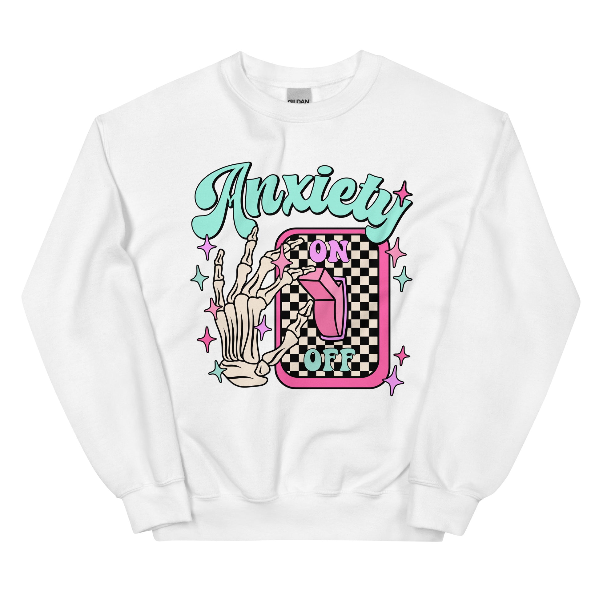 Wish it were easier to turn off your anxiety? Now, you can— literally— with this Anxiety-On Off Switch Crewneck Sweatshirt! Get a laugh (and wishful thinking) with this one-of-a-kind sweatshirt.